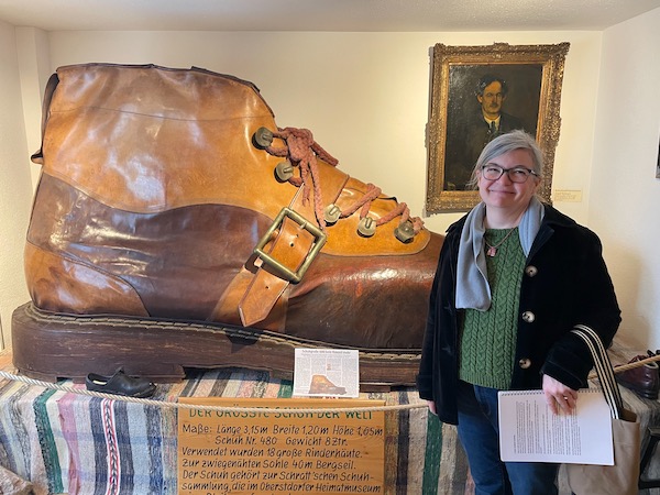 The museum had the world’s largest leather boot. There was an important shoe maker that lived in the town and he made this.
