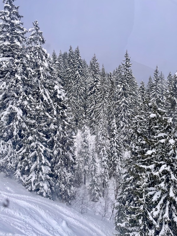 We didn’t have any luck with the sunshine and mountain views. But we did enjoy watching the all the skiers and eating french fries.