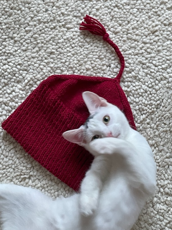 But knitting is a little difficult with these little stinkers “helping” me. If I try to sit down and knit when they are in a playful mood it’s pointless – they just want to chew on my yarn. Arg!