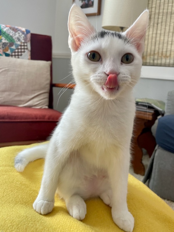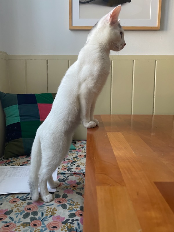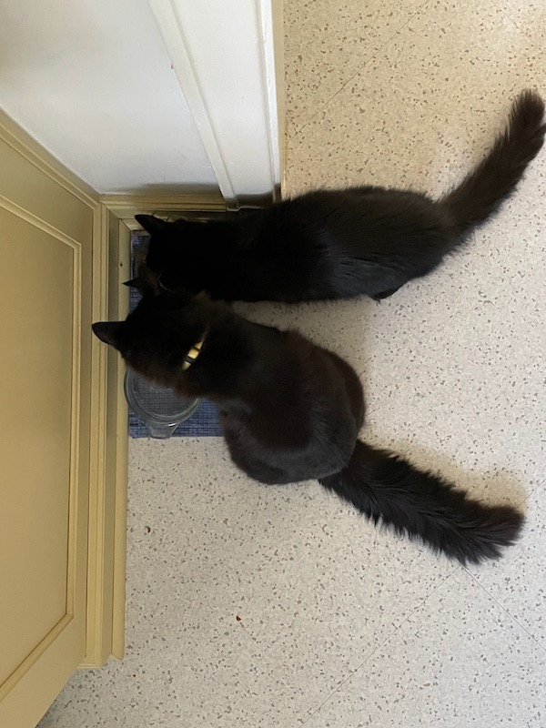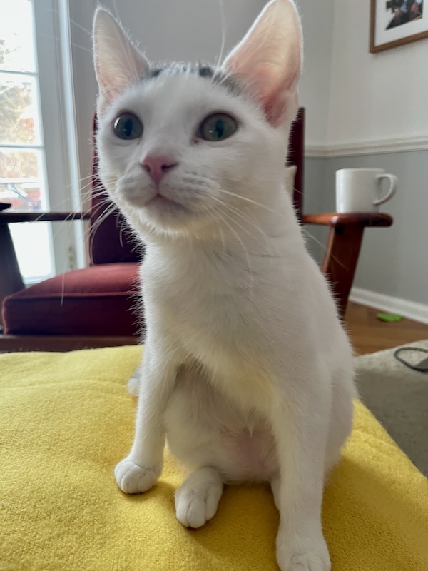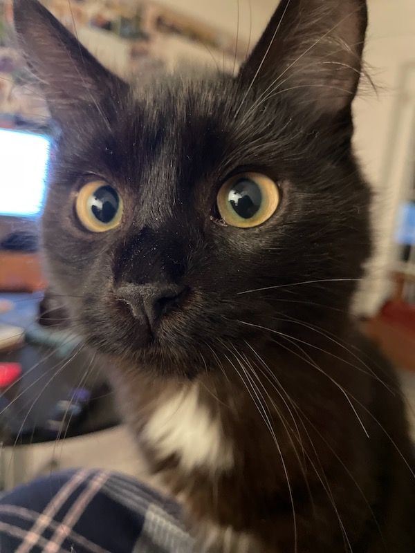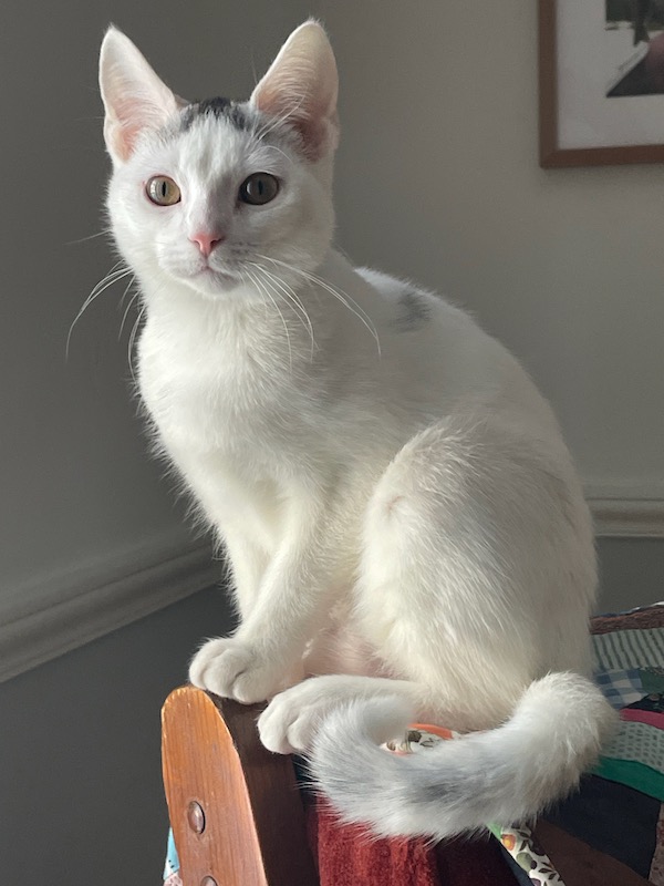 This is the little girl, Lane. She is particularly cuddly and she will sometimes jump up from a chair onto my shoulder. We’re friends.