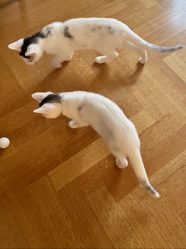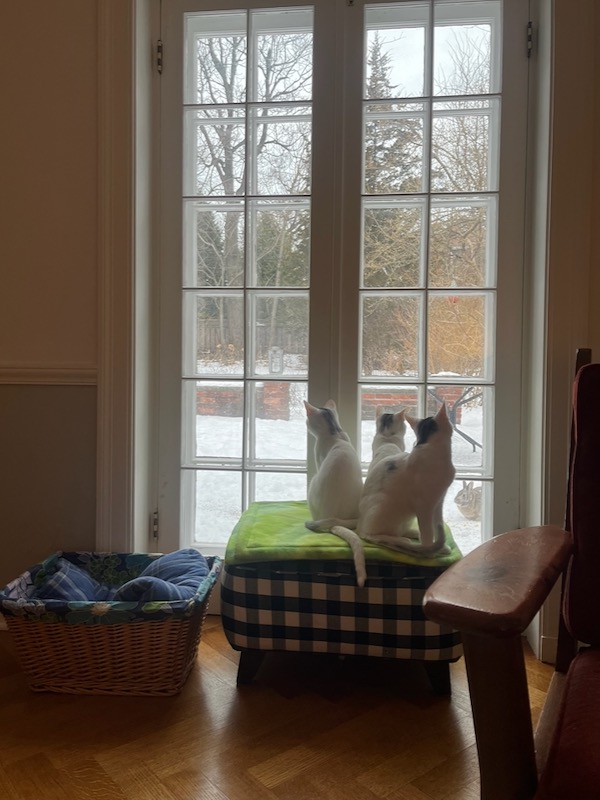 Jennifer and Jenna stopped by on their way to Madison. We had so much fun watching them play! At one point one of the cats launched themself into our french doors about five feet off the ground. They must have seen a reflection. It was cartoon-like and we laughed until we cried!