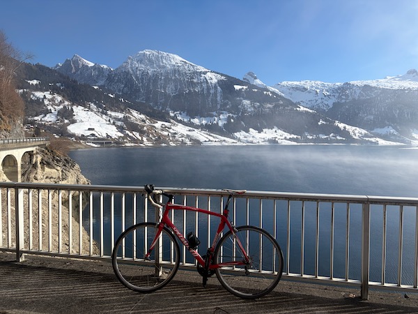 Brian is very eager to be back to his cycling haunts in Switzerland. He has no patience so he takes himself on beautiful rides and just about turns into and icicle. Brrrr.