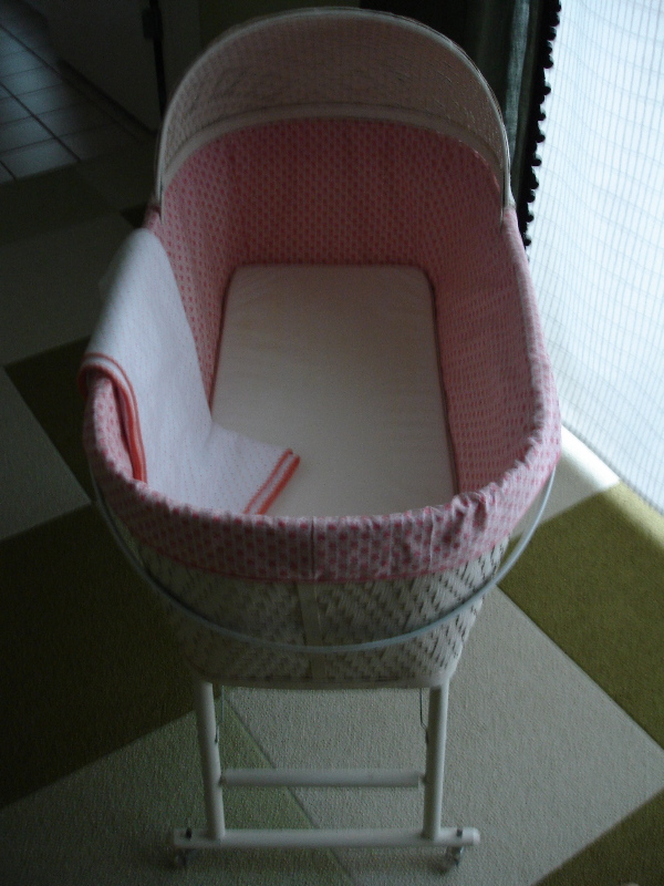 This is the sweet little bassinet that B’s mom saved. The pictures are not great because I was too anxious to wait for the sun to be out in the morning.