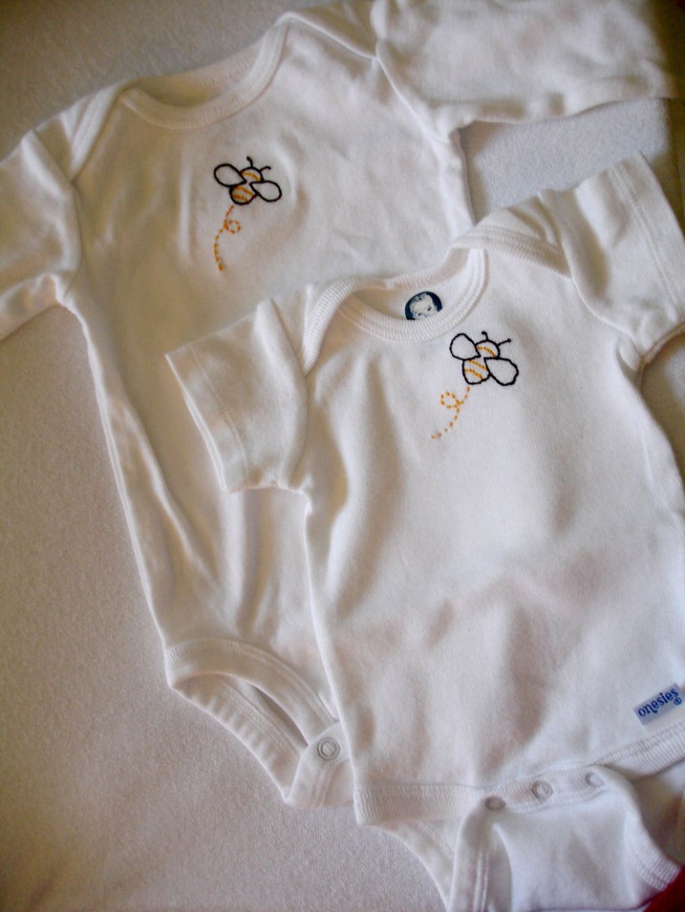 – I embroidered some little bees on a couple onsies. I can’t wait to sew some little jumpers in the future.