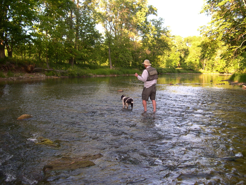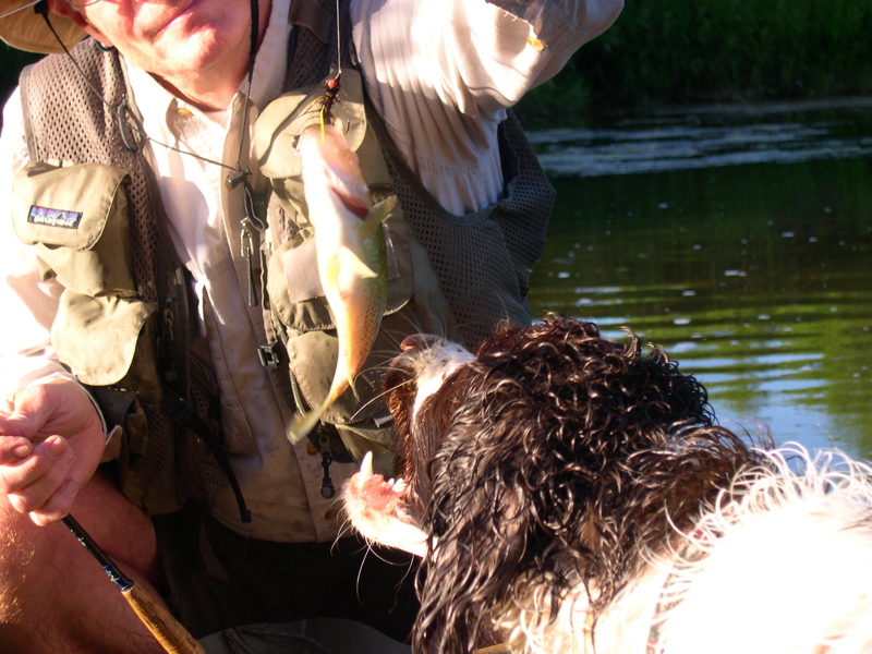 Dad and Baxter going down the river – It’s a bit of a comedy routine. The canoe vibrates as we go down the river because Baxter is shaking with excitement. He is completely focused on my dad’s fishing line the whole 3 hours that we drift along. He’s goofy with anticipation and then when my dad gets a fish on the line he can hardly keep himself from jumping out of the canoe. In this photo my dad is doing a bit of wading – and Baxter is innocently trying to spook all the fish.