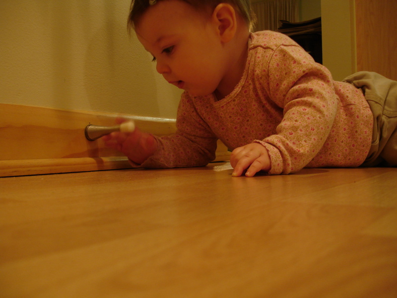 She also discovered the door stop and the doinggggggg sound it makes.