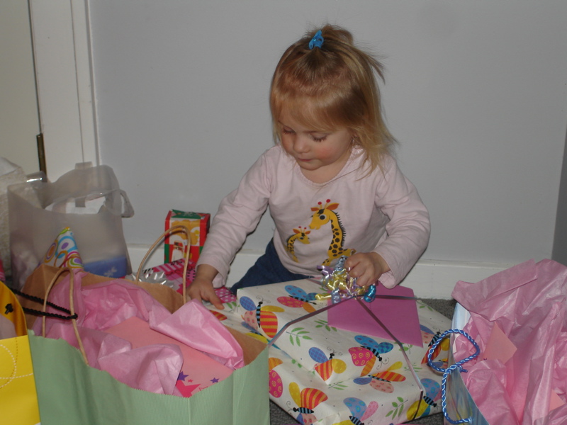 My darling, clever, two year old niece opening birthday gifts. The clever part – she knows her port hand from her starboard hand.