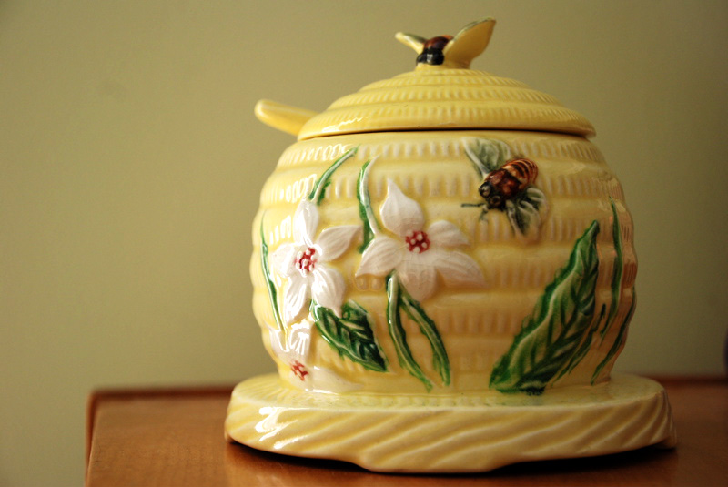 Bea is napping and I should be cleaning up the huge pile of mess that is left from our trip to Wisconsin this weekend. Instead, I’m noticing the sunshine on this honey jar that mom gave Bea for Christmas.