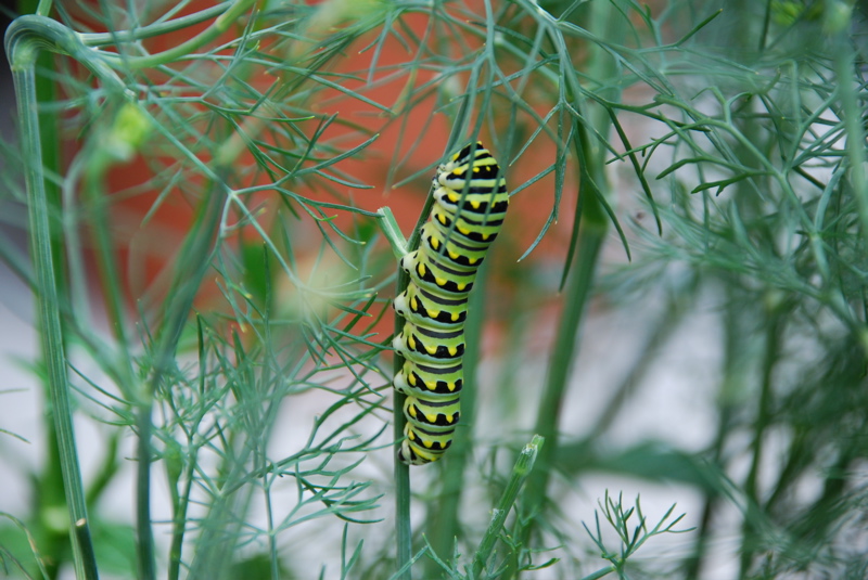 We discovered that the Very Hungry Caterpillar is living on our dill plant: