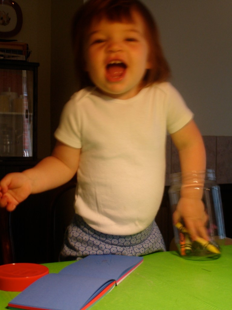 I’m so excited that she is showing some interest in coloring! I’m hoping we can get through any winter blahs and cabin fever by doing some toddler crafts. I have tons of inspiration from blogs like the crafty crow. When I thought of having a kid I always thought about making art and crafts together. I have so much to look forward to and this is just the first little step.