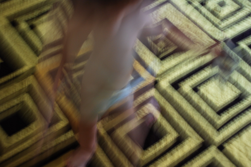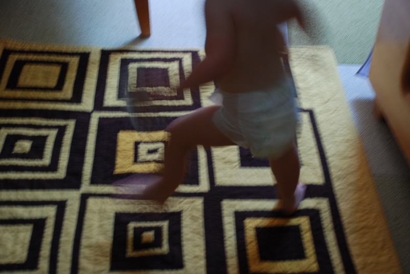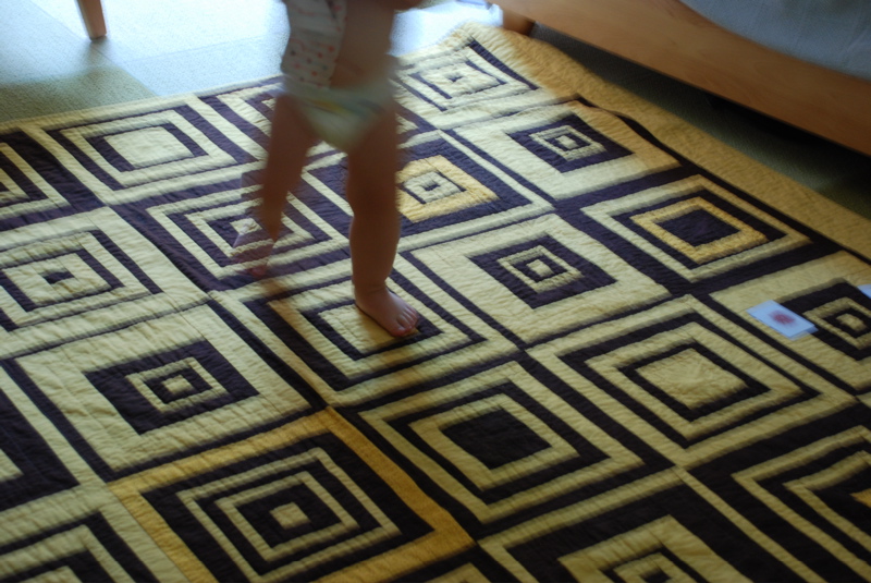 Did I ever show you my one quilting masterpiece? I spread it out on the floor the other morning and Bea got a kick out of running around on the squares.