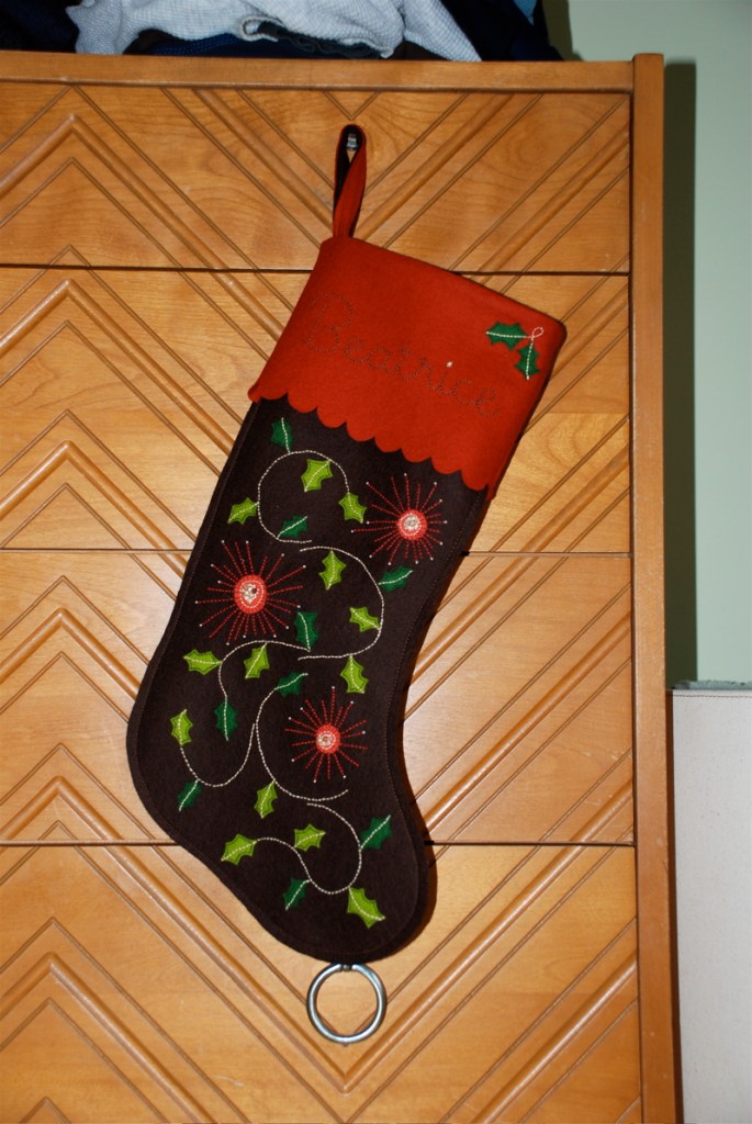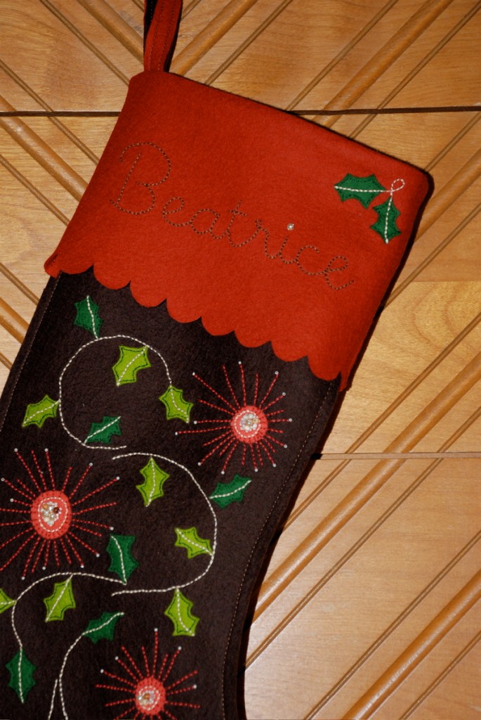 Wooo Hoooo! I finished Bea’s stocking. I could do a couple things to improve it like adding another color to her name to make it stand out better and a line of stitching along the scallop would be nice. But I’m calling it done and it feels good. Now I’m anxious to start some of the other merry things on my sewing/crafting list.