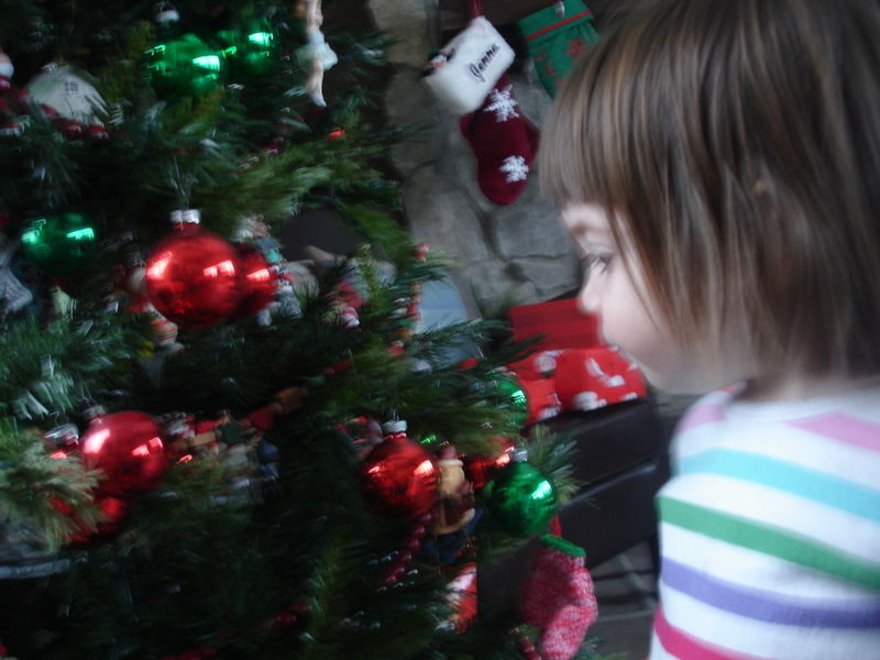 Here’s Bea checking out mom’s terrific collection of ornaments.