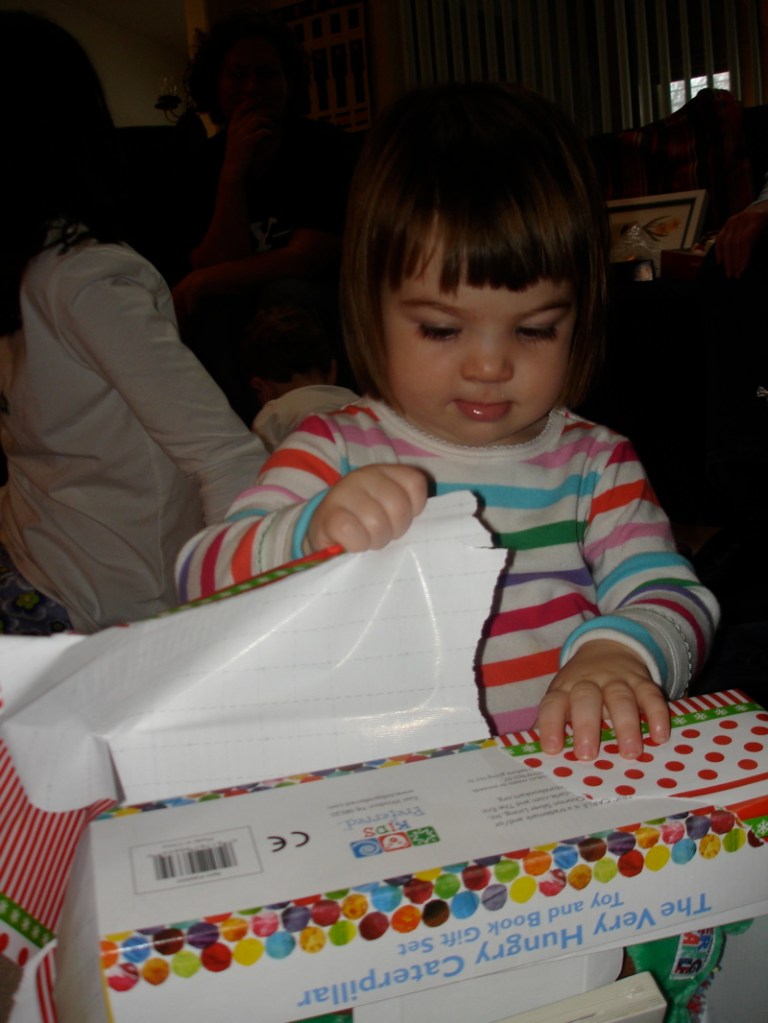 Now she’s really getting good at this gift opening thing.