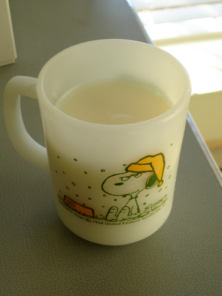 Like these happy cups that Bea uses. The white one is from Kool-Aid (there’s a matching pitcher) and the other one is from Cambell’s. They’re recent acquisitions from Gramma C. I like to imagine her collecting UPC codes and sending away for them – it’s so her. And then I picture those little Chapman boys enjoying a cool, cool cup of red Kool-Aid on a hot day. I bet they all had Kool-Aid moustaches. It makes me snicker and I love that Bea is using them everyday now.