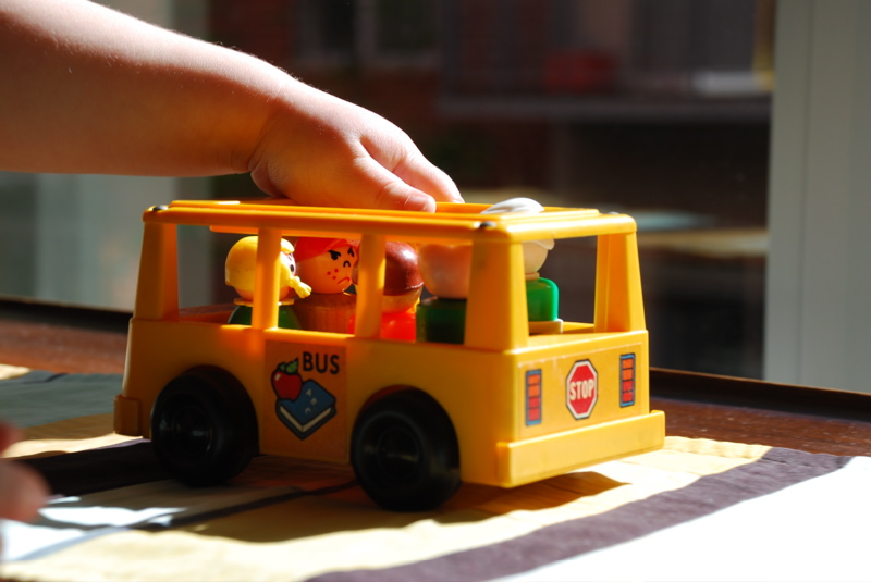 We happened upon some more Fisher Price toys and I let Bea pick up this cute little school bus because she was being good. Look at the little bully with the freckles in the back of the bus – I think he is going to cause some problems.