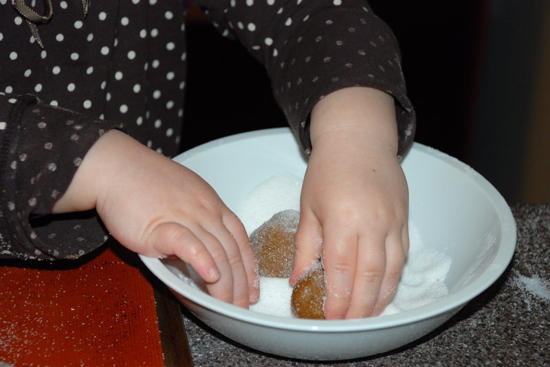 And here’s one more photo of some cute and busy little hands. I’m surprised that we have been baking together. I thought it would be much later when she would be able to stand on a chair and do the stirring and pouring. But she is so into it and I really enjoy it too. We are making Grandma Dice’s molasses cookies here.