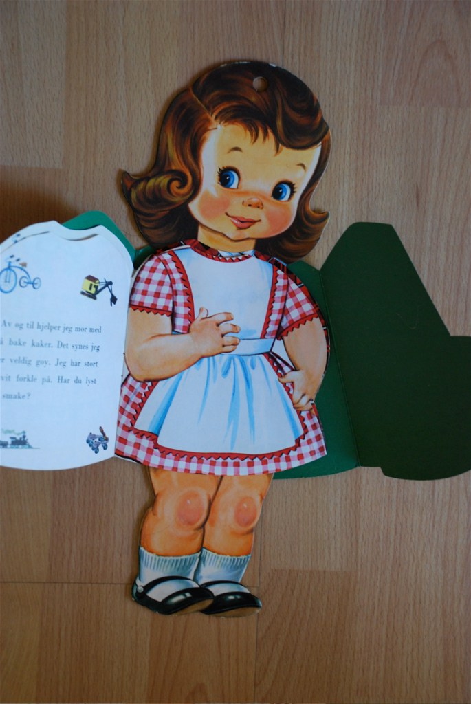 And here’s my real treasure. Add this to my collection of favorite things. I found this little girl at the Denver Library. We spent the day at the Denver Art Museum and the library was having a big used book sale next door. The art museum was great. I was most interested in the sculptures of cowboys and horses and the paintings of big western landscapes and I was not disappointed. The museum also did a great job of integrating things that were interesting for kids and hands-on throughout the museum. If you’re in Denver make time for a trip to their art museum. Anyway – back to my treasure. She’s a little book printed in Sweden and she changes her outfit when you turn her pages. Oh so cute. Silly Bea though she was going to get to play with her – oh no – this dolly is for mommy. Now I just need to find a Swede to read the story to me.