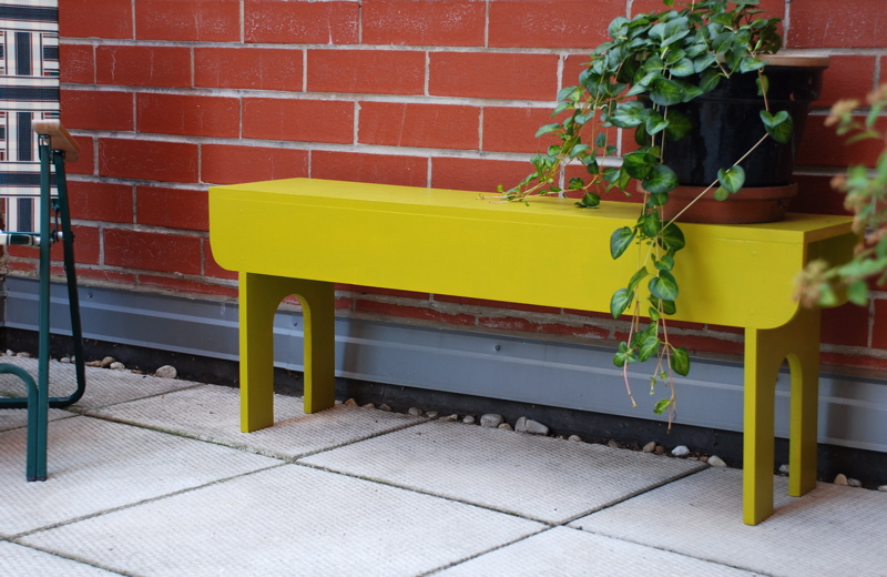 Check out my new bench. Dad cut the wood for me on Father’s Day and I finally got it put together and painted. I suspect Brian hates the color – but it livens up that far end of our patio. I made the same bench once before. I think it’s from an issue of This Old House magazine. It’s cheap and easy to make… if you have a saw – thanks dad.