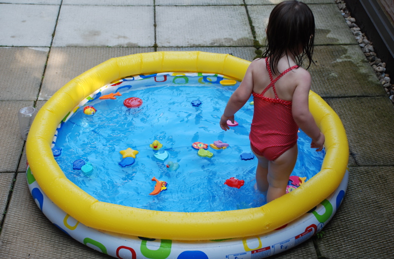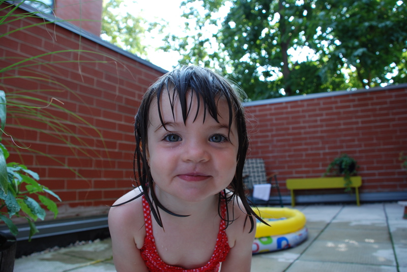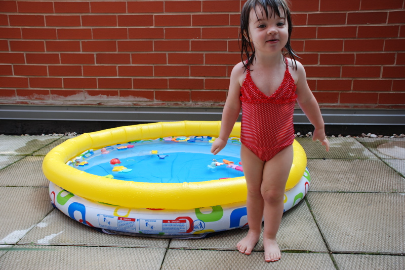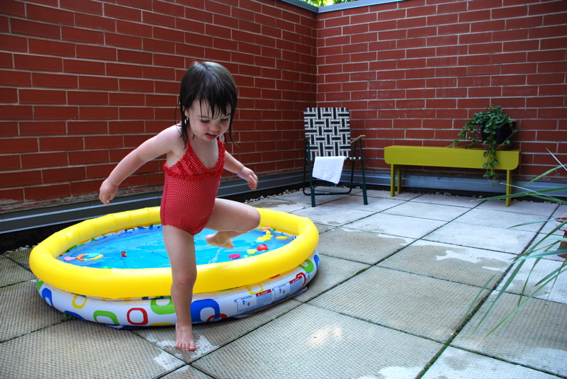 If we’re not at the beach you can find us at the pool this summer. I’ve turned the far end of our patio into our pool area. It’s just so easy for me to fill it up and let her play. If it’s a little chilly out I can even put warm water in since we run the hose from our kitchen sink. Our patio has been such a blessing with Bea – it’s safe and enclosed and it has plenty of space for a toddler to run around and get tired out. Here she is – aaah summer is bliss.