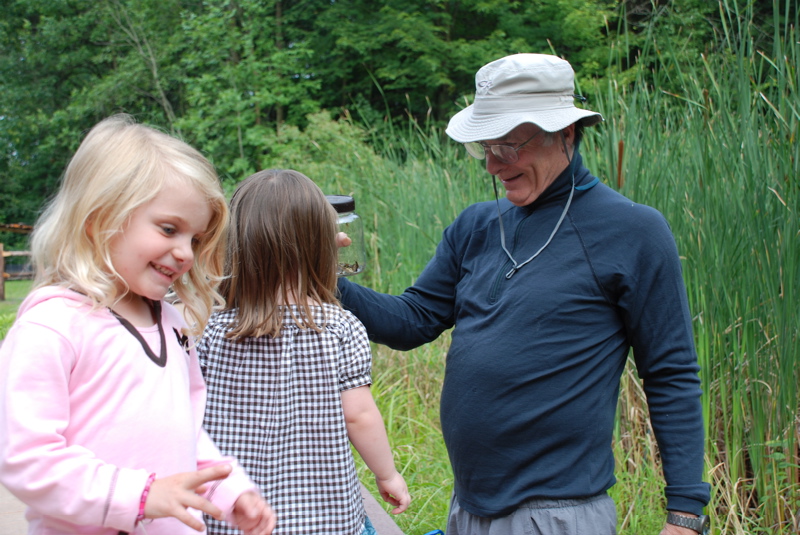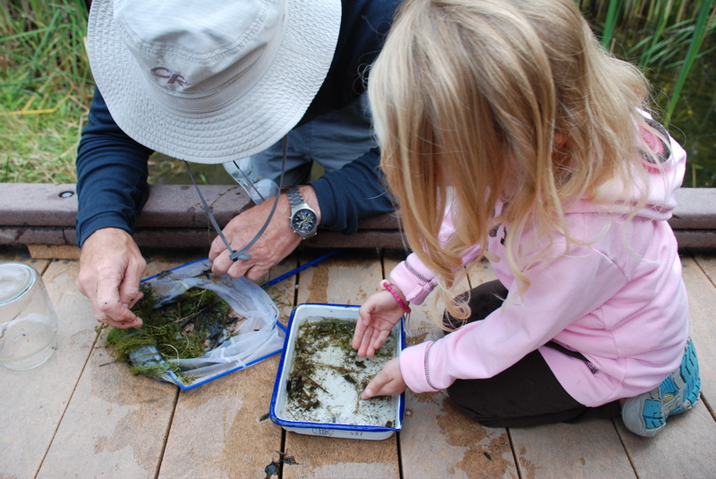 As long as I can remember my dad has been dipping a net in rivers and ponds and sifting through the treasures he finds. He has taught countless kids (and adults) about the plants and bugs you can find in just a little scoop from the Chippewa river. Over the weekend Bea and Jenna got to experience Grandpa’s aquatic insects lesson for the first time. Pinch me – it was a magical.