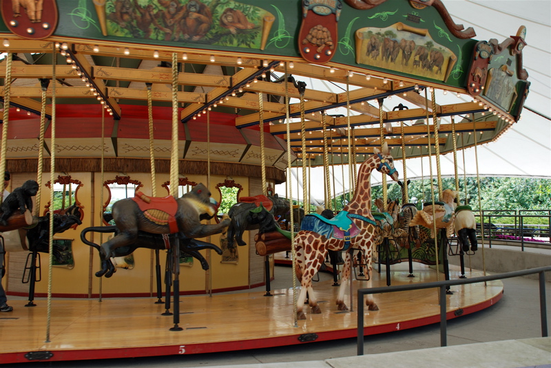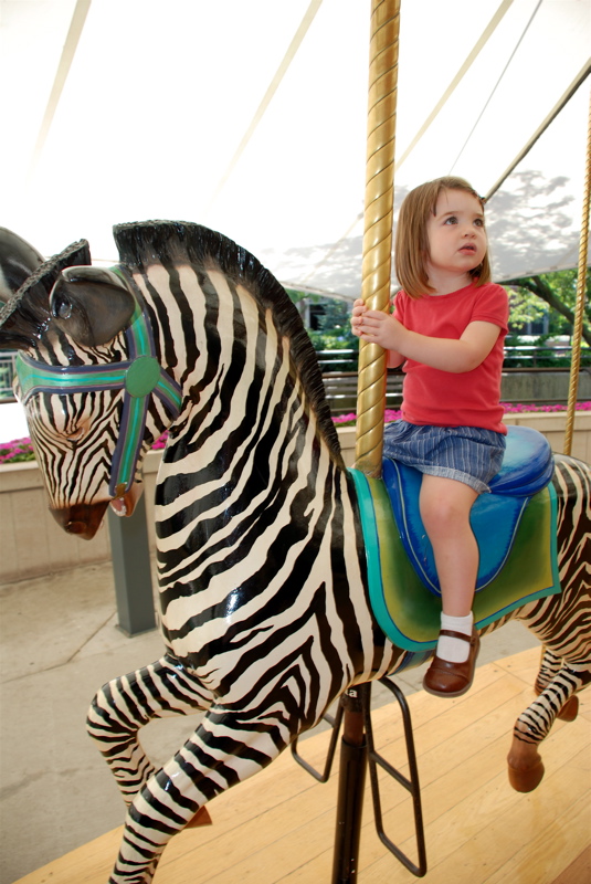 Bea overcame her timid tendencies today. We spent the day at the Lincoln Park Zoo. She rode the kiddie train all by herself. She climbed in this big net and ladder thingy that was crawling with big kids. And she rode the carousel. She looks like she’s not having fun in the last picture but she was. She was just very serious and busy taking it all in. It takes a lot for her to step out and do stuff like that without holding my hand. It was a good day.