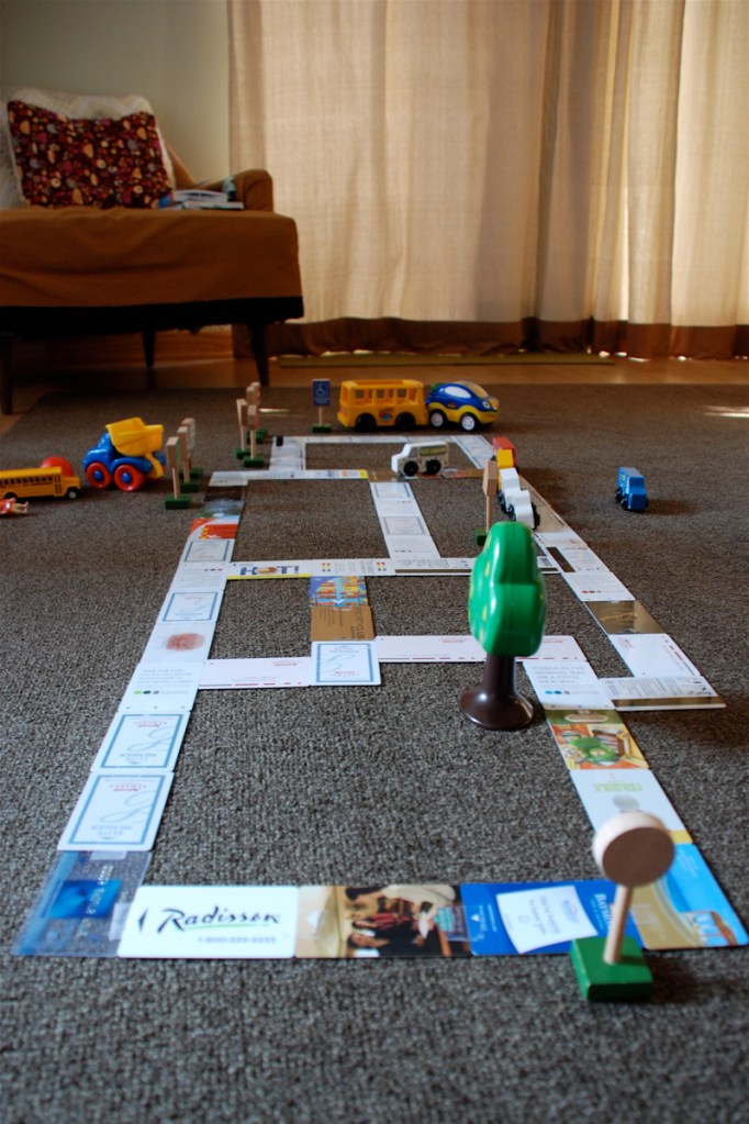 One of the few and far between benefits of having a Daddy that travels all the time. You can make the keycard collection he has given you into roads.