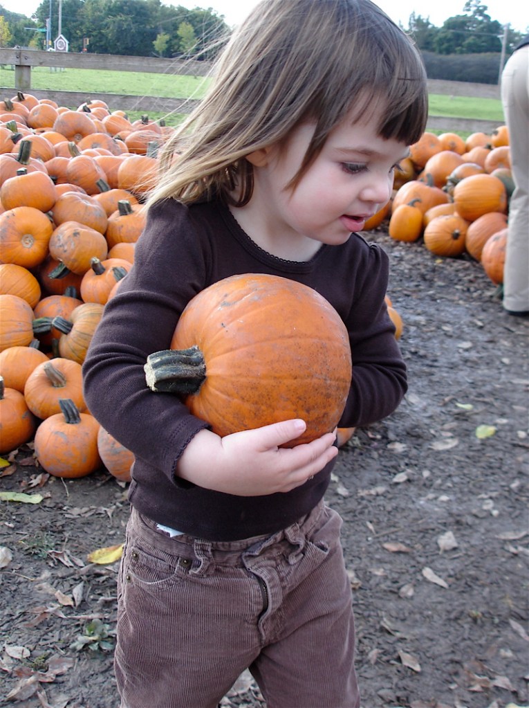 Here’s Bea feeling proud of the pumpkin she picked out on Sunday.