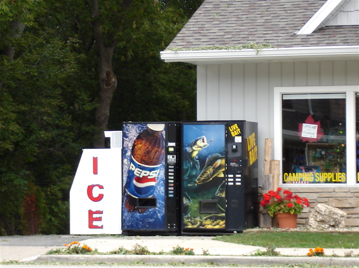 On our way out of town I snapped a photo of a type of vending machine that we just don’t have around here – Live Bait. Not sure how that works? Is it a joke?