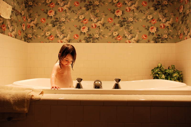 The Inn where we stayed was nice. It was set up to be romantic but worked for entertaining a toddler too. There was a gas fireplace that Bea loved to look at while she (didn’t) fall asleep at night. And there was a big whirlpool tub in the bedroom. Ooh that was exciting for her – and me too since I could just laze around in bed while she was on the other side of the room splashing around.