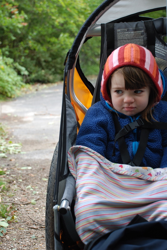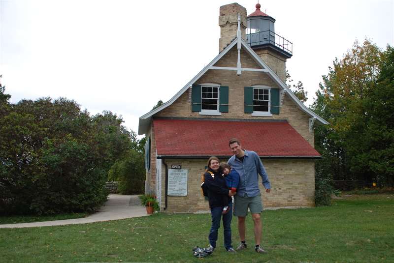The next day it wasn’t raining but there were was a high wind warning. We rented bikes and a pull-behind for Bea. It was chilly and extremely windy, but we had a great ride through the state park. We stopped for some quick photos at the lighthouse (built in 1868). Bea was smiling most of the trip until the end when she got a little whiney and complained of cold fingers.