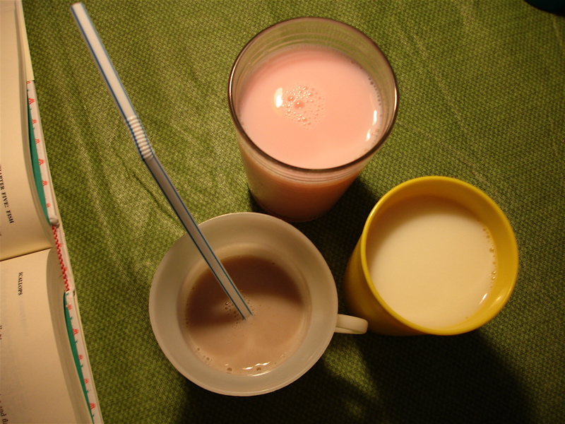 Last night I asked “what do you want to drink for dinner?” Bea requested chocolate milk. Then Brian chimed in and said he would like pink milk. I played the adult and had white milk. How many 34 year old men drink pink milk so enthusiastically?