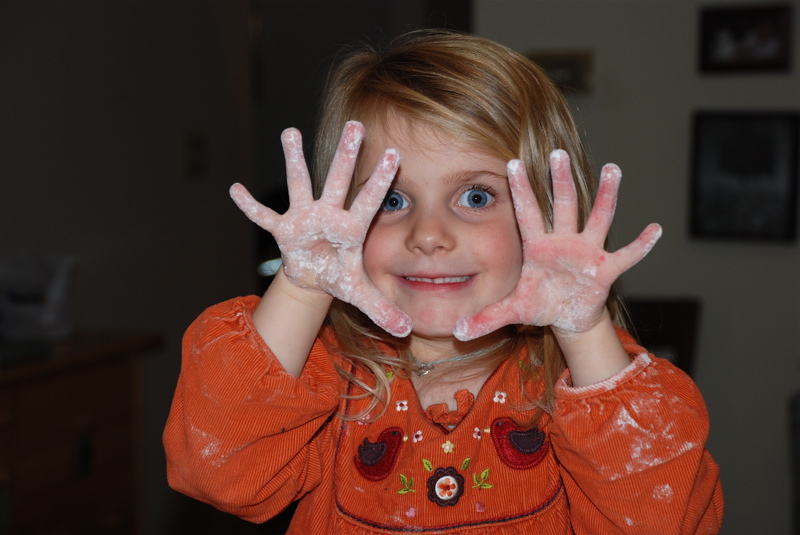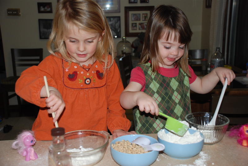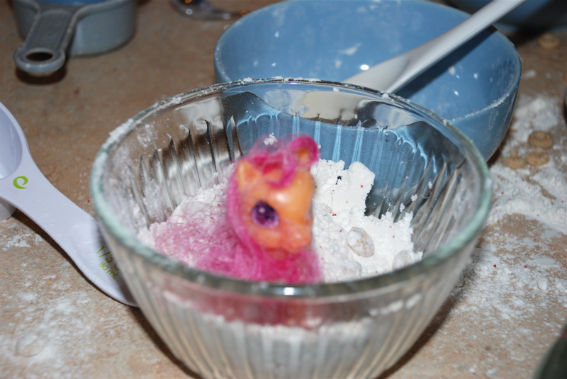 Is there anything nicer than having a cake made specially for you. Jennifer and Mom lovingly made a delicious red velvet cake for my birthday. While they baked Jenna and Bea did their own “baking”. Really just spooning flour and Cheerios between their bowls and getting some little ponies involved too.