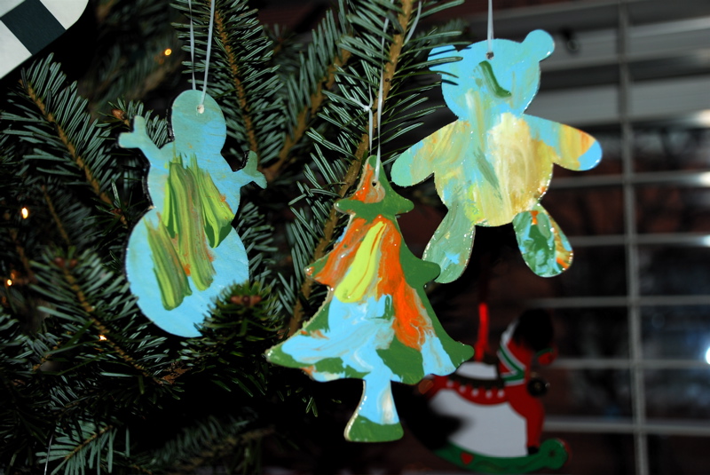 – Here’s a little craft that Bea made. I picked up these wooden shapes at Micheal’s for around fifty cents each. I love the free brush strokes that she makes with big globs of paint. It’s similar to the free way she waves her arms around. She’s not afraid to stick her arms up in the air at any time to show her excitement. I mean do you throw up your arms when you are at a restaurant and you find out they do have mac and cheese? I drilled holes, painted them with Modge Podge and put her name and the date on them. I know I’ll have these little trinkets of toddlerhood forever.
