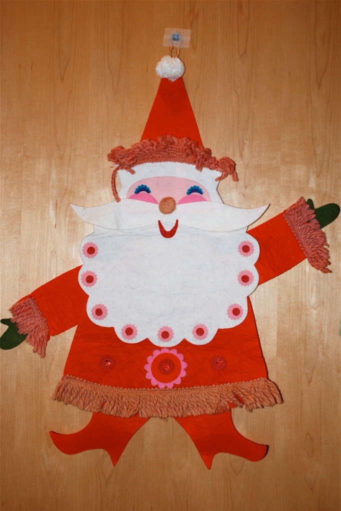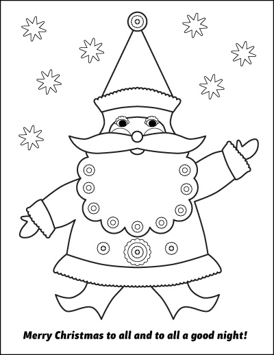 I made a santa coloring page based on this ratty felt santa that I got at a rummage sale.