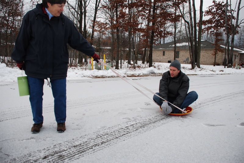 All ready to go sledding – I posted lots of sledding pictures earlier but I didn’t show this one of Grandma pulling Brian.