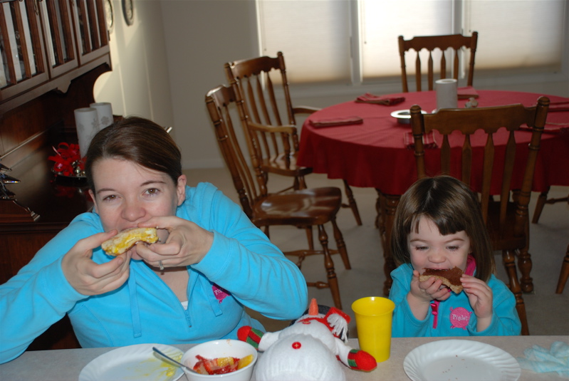 Just a few more photos that I must post. First up – Bea and I having breakfast in our matching Team Piglet shirts. Oh you haven’t heard? Jenna is getting a boat for her birthday and I helped to design a logo for her boat (called Piglet). Apparently Chris is researching pink boat paint – who knew that pink boat paint would have to be special ordered? Ha ha. Jennifer and Chris made embroidered Piglet shirts for Christmas. So now we are officially part of Jenna’s sailing team. Next year she will get a pony for her birthday. Ha ha again.