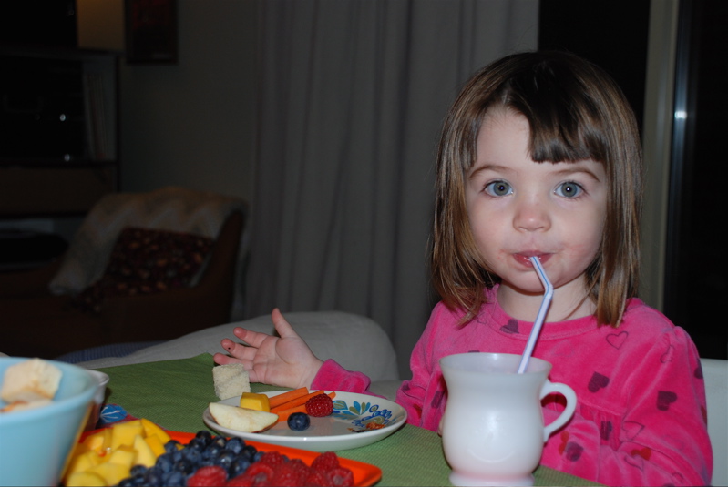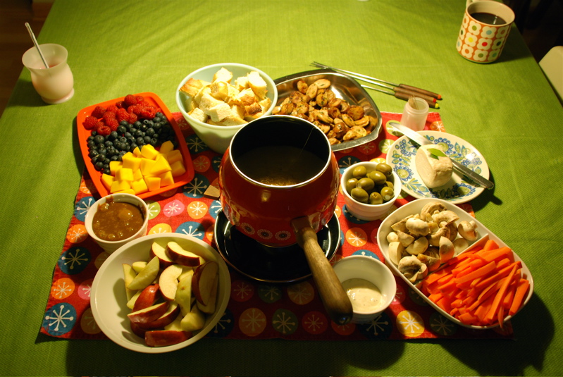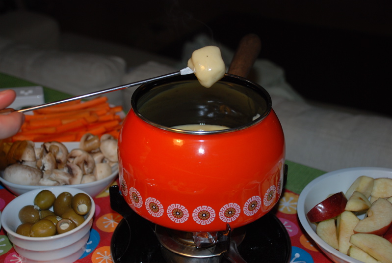 We had lunch at one of our favorite restaurants – Tapas Barcelona – here in Evanston. Later we went swimming. Then we made a little feast for ourselves. Fruit, veggies, dips, sausages, olives and to celebrate our move: cheese fondue. I gave Brian the fondue pot for Christmas. Mmmm – it actually turned out great. I could eat melted cheese on bread all day long. After dinner we had a little Wii Super Mario tournament and then Bea wanted to dance. Brian put some music on and we danced around the living room. While we danced it felt like a last celebration in and for this home. I thought about all that has happened and how quickly our last five years have passed here. I will be sad to leave and at the same time excited for our future in Zurich.