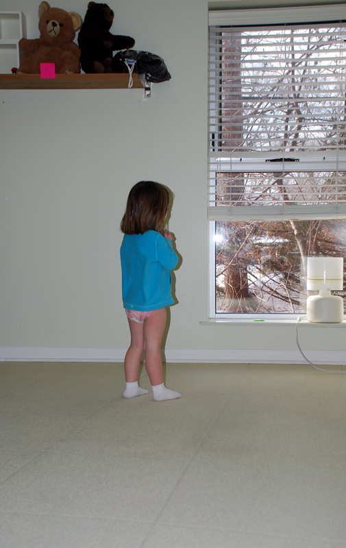 After the boxes were cleared out the sun came in the windows and Bea ran around. She was very interested in the empty closets. Also, if you’re wondering, yes we have pants for her – they weren’t packed up and sent to Zurich. For some reason she has a pants aversion lately. The first thing she does when we come home from an errand is ask me to help her take her pants off – annoying.