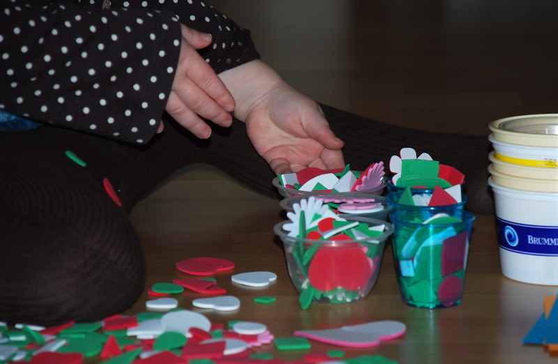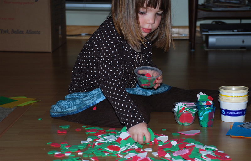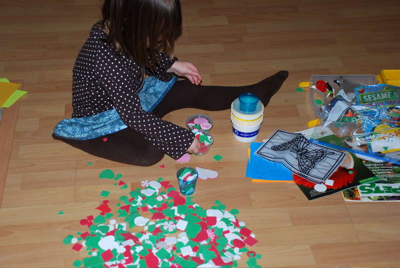 She plunked right down on the floor and spent the bulk of the afternoon playing with the little foam shapes. And I scuttled the Seasame Street magazine away to save for our plane trip in a couple weeks.