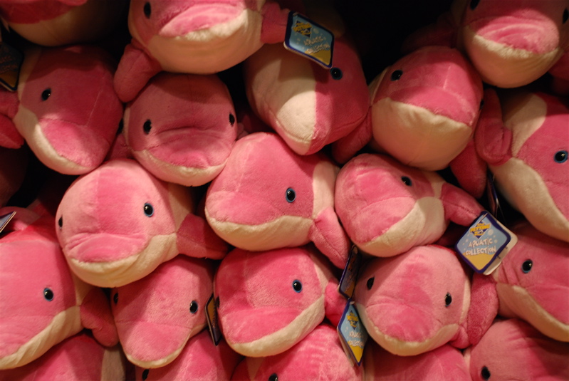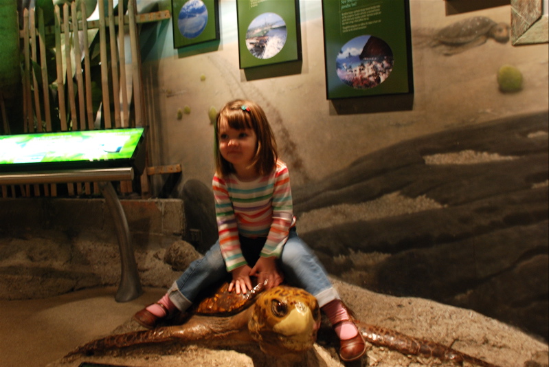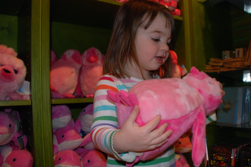 The gift shop. They had a whole wall of pink dolphins, pink turtles, pink penguins and pink seals. It took some major will-power on my part not to buy one for her. She was just so cute squeezing them, talking to them and carrying them around.
