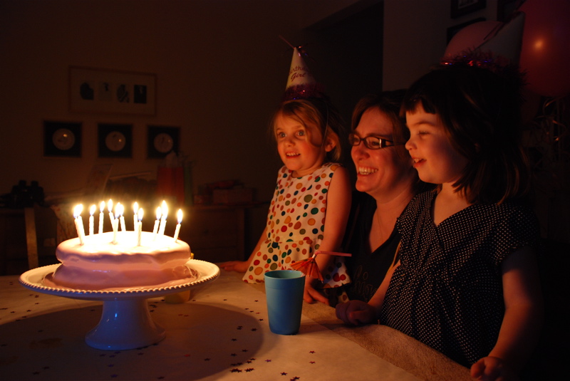 We had a little birthday party for Jenna, Bea and Jennifer before we left. It was all sweetness with pink and purple balloons and smiley, very excited girls. And the biggest cake failure I’ve ever made – the frosting didn’t set up and the cake was a little off. It looked like a large pink melting marshmallow. Makes your teeth hurt to look at it.