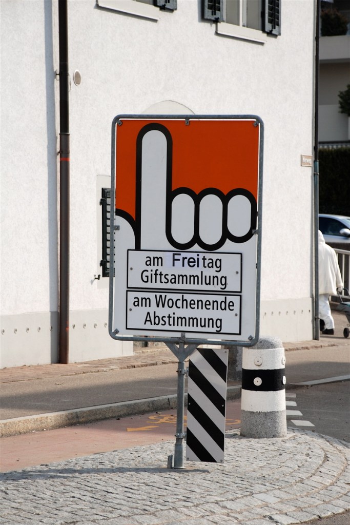 There are a few of these signs around town that tell you when and what to recycle or other things that are going on. I think this one says Friday gift collection (no idea what that means) and vote on the weekend.
