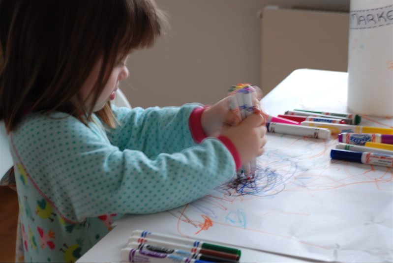 More coloring on big paper.