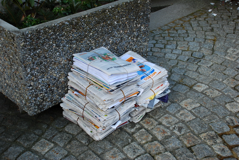 I’m learning about recycling. The Swiss, as you may have heard, are super devoted recyclers. Today was the first paper collection day so I made my first neat little bundle of paper and tied it up with string. Here are a few shots to show just how neat and tidy the piles of paper are.