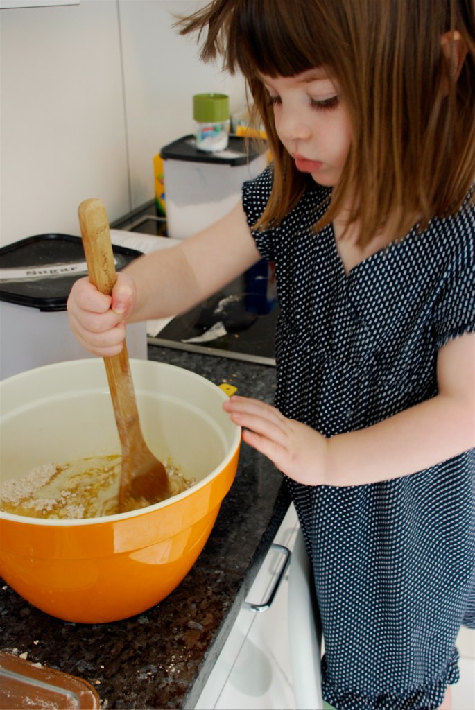 Monday we tried some more baking: oatmeal raisin cookies. They turned out pretty good, but things are a little off. I was reassured this morning when another mom from the US said that she has the same problems. It’s because the butter is slightly different, the flour has a slightly different gluten content, the ovens work a little differently, etc., etc. I guess I’ll just keep trying and experimenting.