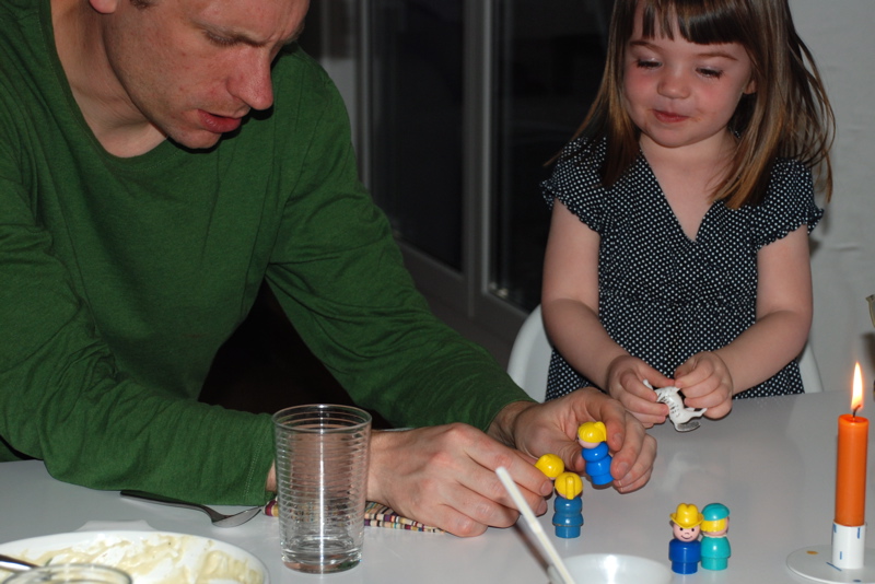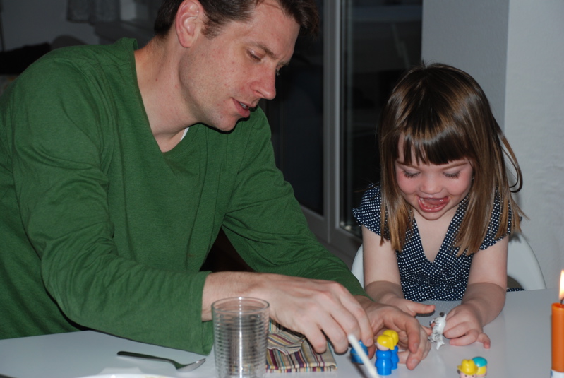 Only Daddy can make Bea laugh and smile like this. Here he is invoking his gossip girl characters. He has a high pitched little gossip voice for these three matching Fisher Price ladies.