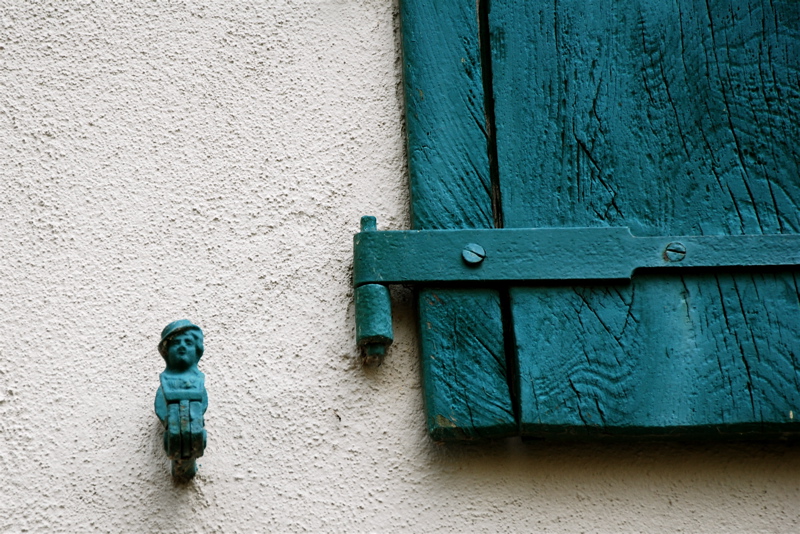 Here’s a tiny architectural detail on a house we walked by. It’s a little man that holds the shutters open. I wonder how old he is.