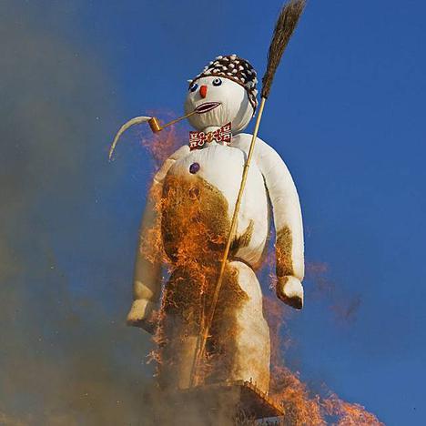 So we had to head home and watch the burning of the snowman on TV: