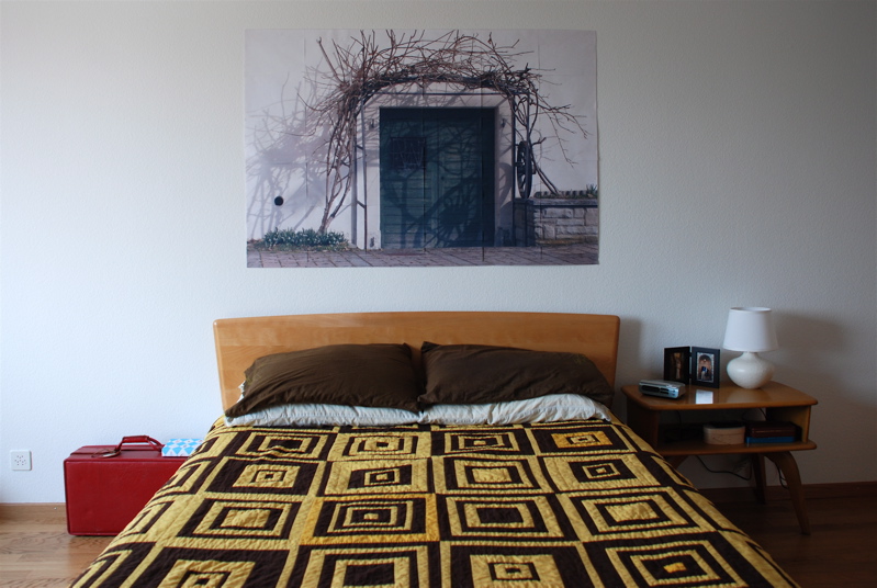 Bea and Brian went out for a long walk in Rapperswil today. I’ve been playing around at decorating the house a bit more. In my ongoing effort to add some color without painting or putting too many holes in the wall I put up a big paper poster. I made it from this photo that I took back in the beginning of March: